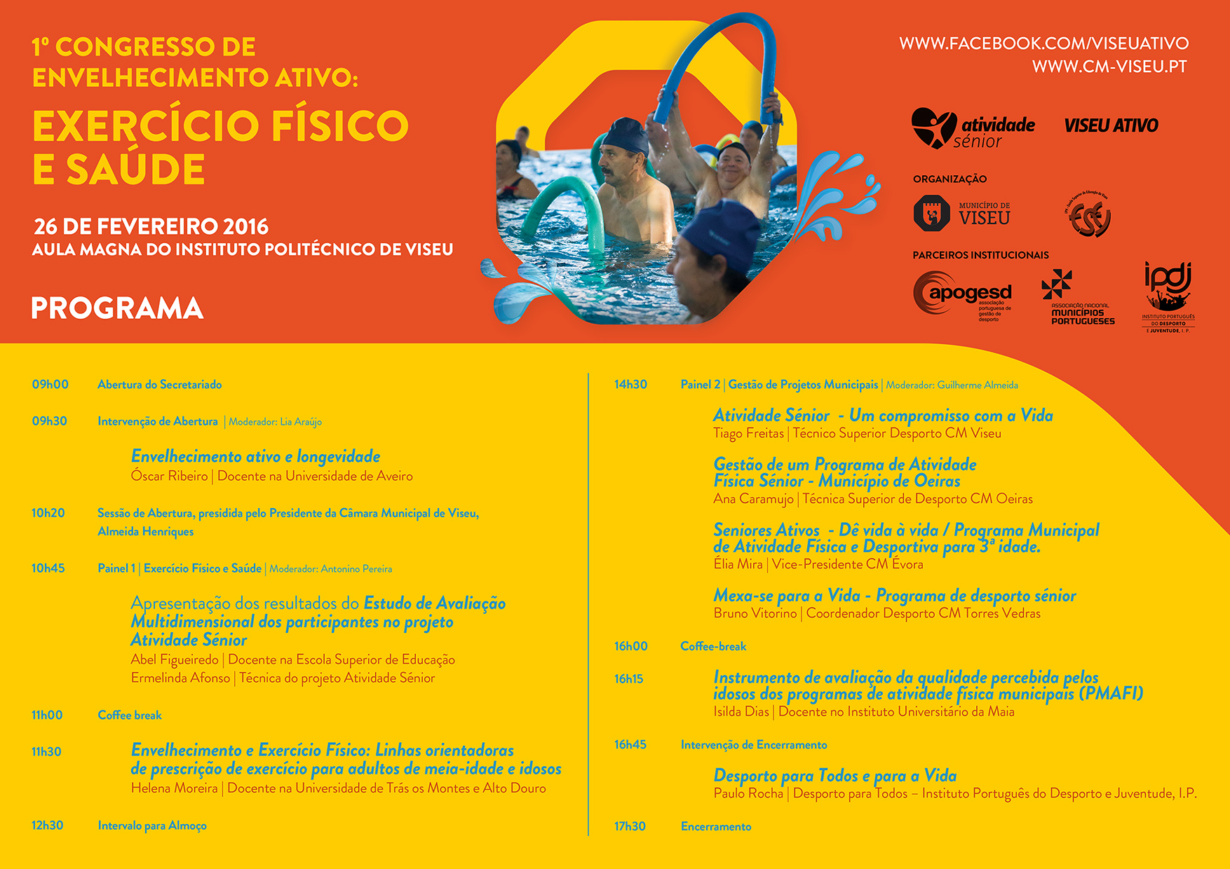 Esta iniciativa integra o conjunto de ações agendadas no âmbito da 10.ª edição da Atividade Sénior e destina-se, essencialmente, a estudantes e profissionais da área do Desporto, Saúde e Gerontologia. A participação na iniciativa é gratuita mas requer inscrição prévia e obrigatória até às 13 horas do dia 25 de fevereiro.