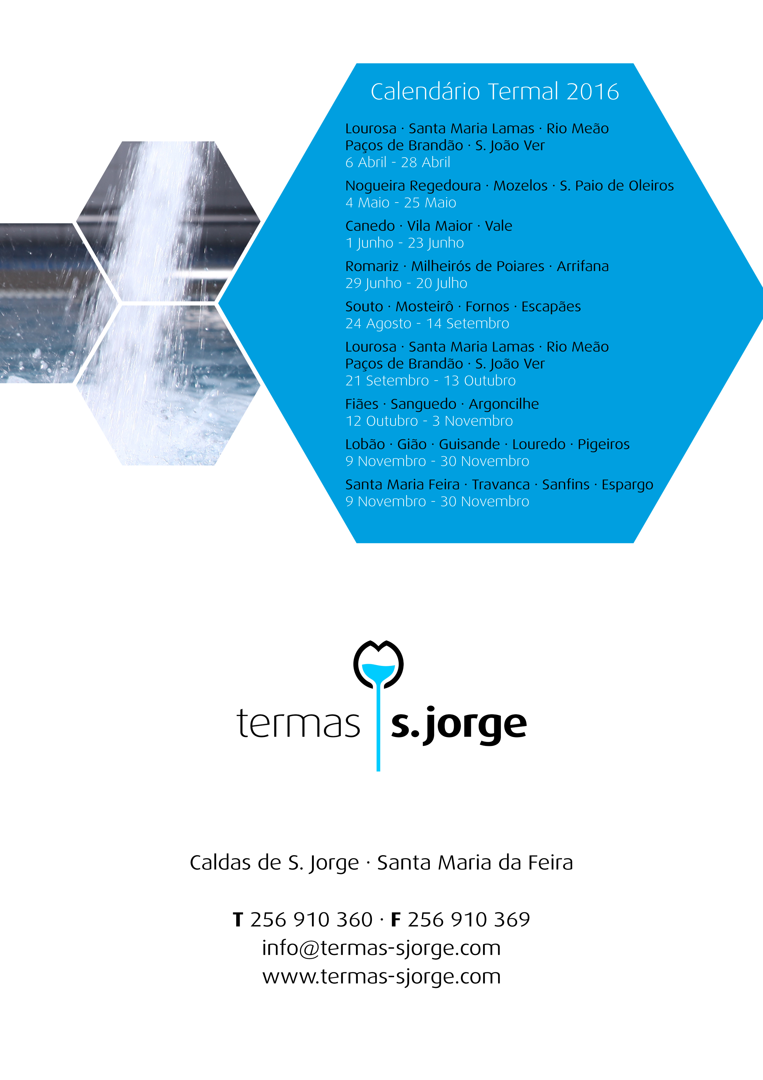 A primeira viagem deste ano está agendada para o próximo dia 6 de Abril, com circuito traçado entre as localidades de Paços de Brandão, Lourosa, Santa Maria de Lamas, Rio Meão e S. João de Ver. Ao longo deste ano, as Termas S. Jorge estarão representadas em algumas iniciativas do município, divulgando condições e a agenda de viagens deste programa. As Termas S. Jorge estão vocacionadas para terapêuticas do foro reumático, músculo-esquelético, vias respiratórias e pele.